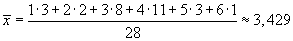 zu b) Der Median ist der mittlere aller (der Größe nach sortierten) Datenelemente. Enthält die Liste eine gerade Anzahl von Elementen, so wird der Median als arithmetisches Mittel der beiden mittleren Elemente ermittelt. Dann ist der Median ggf. mit keinem der Listenelemente identisch! Als Rohdaten sind hier die 28 Noten gegeben; da dies eine gerade Anzahl ist, gilt für den Median (mit n: Anzahl der Rohdatenelemente): |